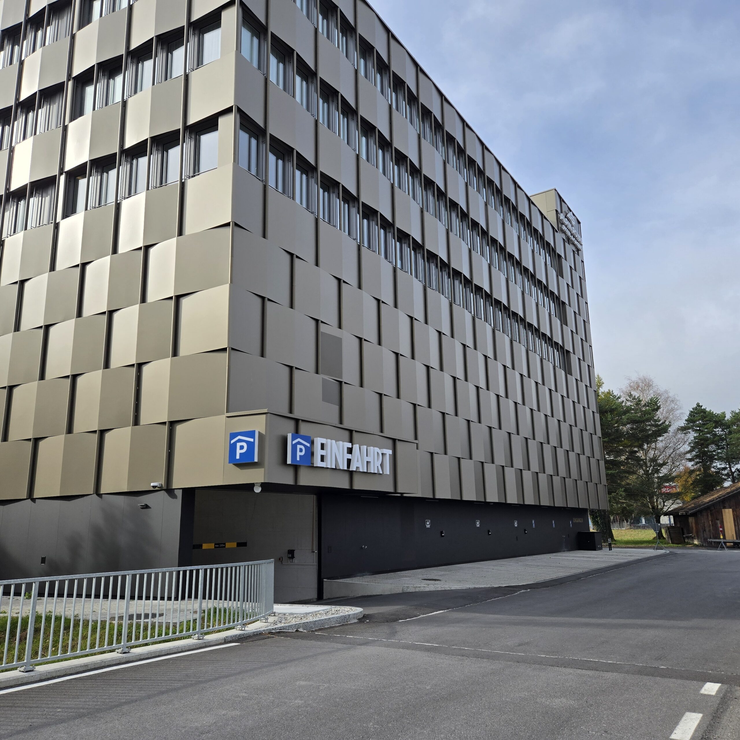 Nach der Zentrale der „LKW“ (Liechtensteiner Kraftwerke) biegen Sie rechts ab und finden nach 100 Metern unser Gebäude mit der Einfahrt in unsere Parkgarage.