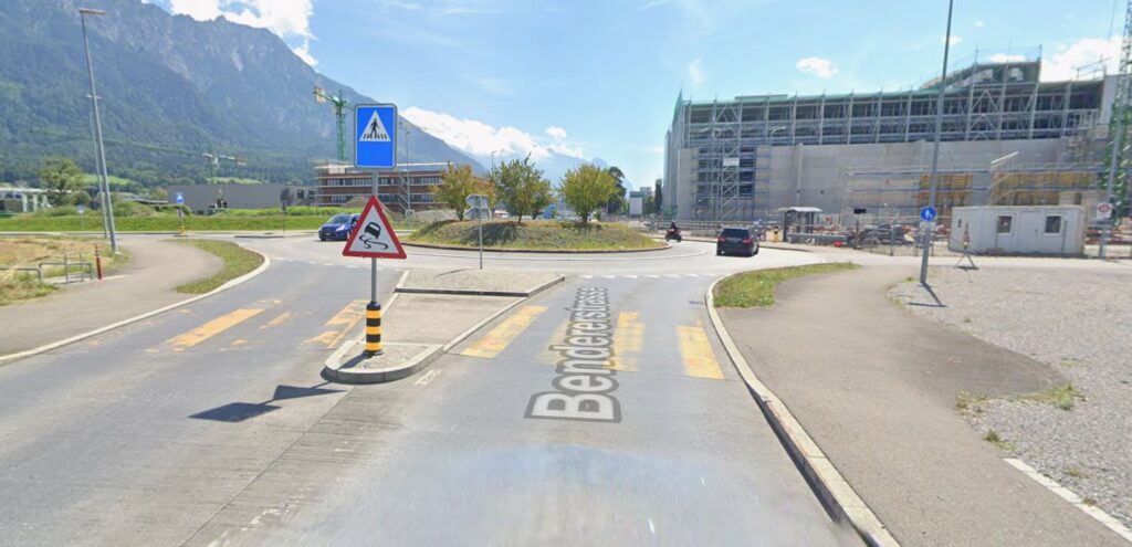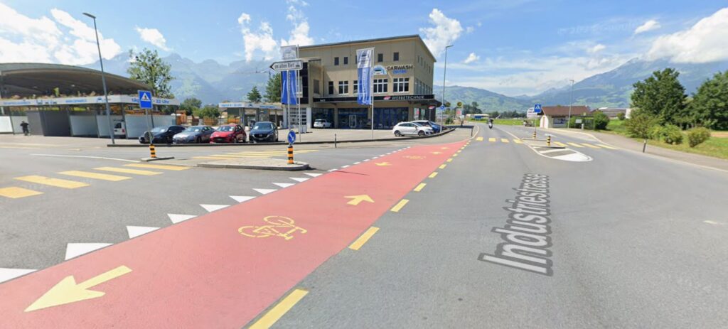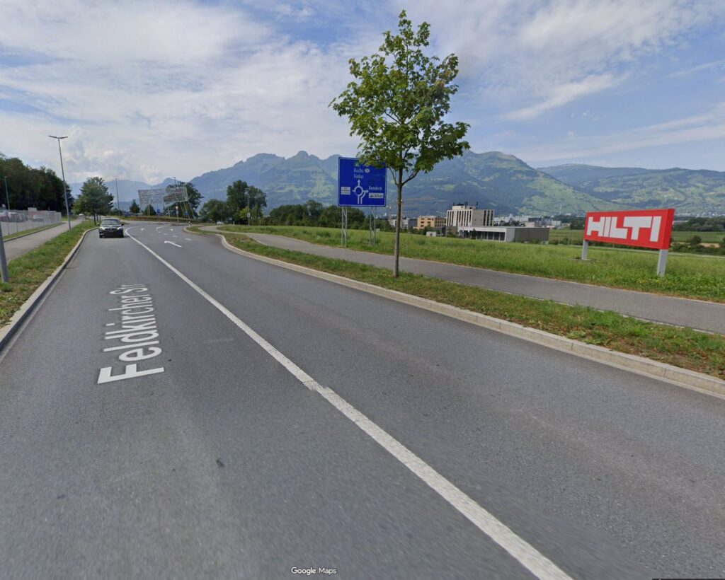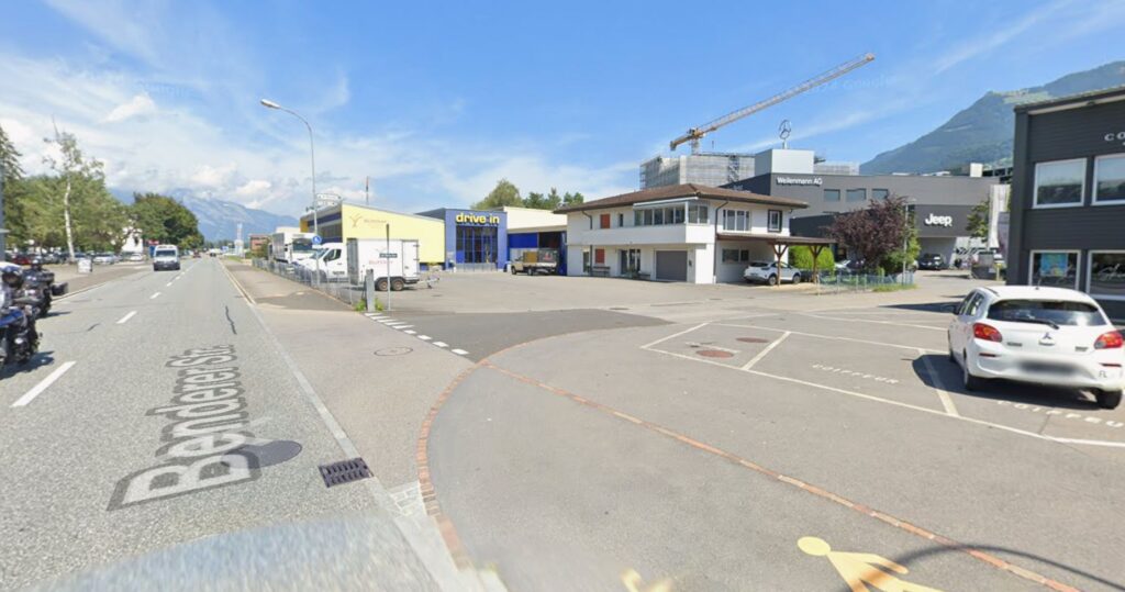 Danach nach rechts in Richtung Schaan Industrie auf die Strasse „Im Bretscha“ einbiegen.